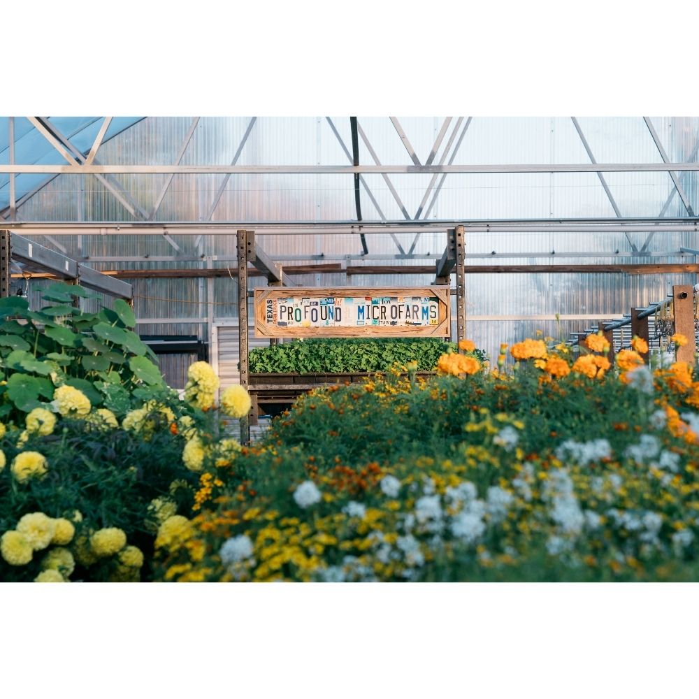 Profound Microfarms was founded in 2015 by Jeff and Lee Bednar in Lucas Texas. They grow over 150 varieties of leafy greens, edible flowers, rare culinary herbs and microgreens in 17,000 square feet of controlled environment greenhouse hydroponic systems. In 2018 they started a second company called Profound Foods, a food distribution hub, that was created to connect local farmers and ranchers to chefs. Jeff and Lee’s journey started with the question “where does our food come from?” Leading them down the path of growing their own food and connecting with the local food community, including farmers, chefs and educators.